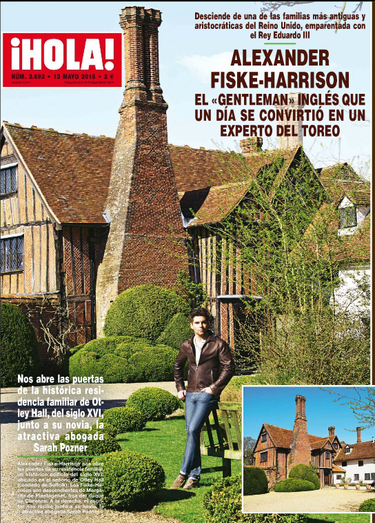 Translated from Spanish: “Descended from one of the most ancient and aristocratic family of the United Kingdom, forefathered by King Edward III: Alexander Fiske-Harrison, – The English Gentleman Who Became An Expert On Bullfighting – We open the gated of the historic family residence, Otley Hall”